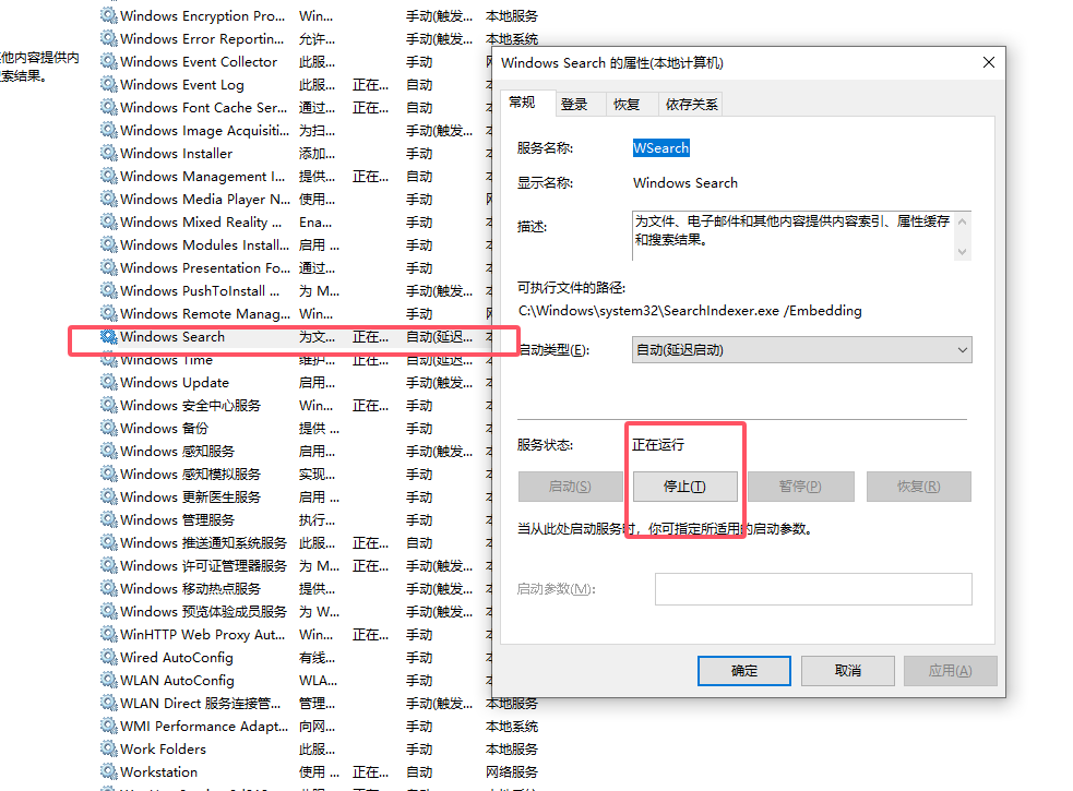 首先去电脑服务里关闭这个服务,就会自动关闭任务管理器中windows search 的后台进程,然后去路径删除文件。